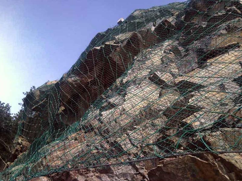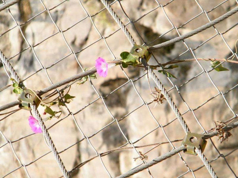 對(duì)于一些存在危險(xiǎn)巖石的區(qū)域,我們可以增加錨桿長(zhǎng)度,使縱向、橫向支撐繩通過(guò)錨桿的拉力加大對(duì)危巖的作用力,可以有效的控制危巖并加固,提高防護(hù)等級(jí)。為了是鋼絲繩網(wǎng)的預(yù)張拉更加充分,整體受力更加均勻,我們一般采用掛鉤的方式,掛鉤的方式適用于各種復(fù)雜的地形。同時(shí)我們需要保證鋼絲繩網(wǎng)在支撐繩的作用均勻受力,我們采取掛鉤的方式將鋼絲繩網(wǎng)固定在支撐繩賀茂趕上,再用縫合繩將其縫合。