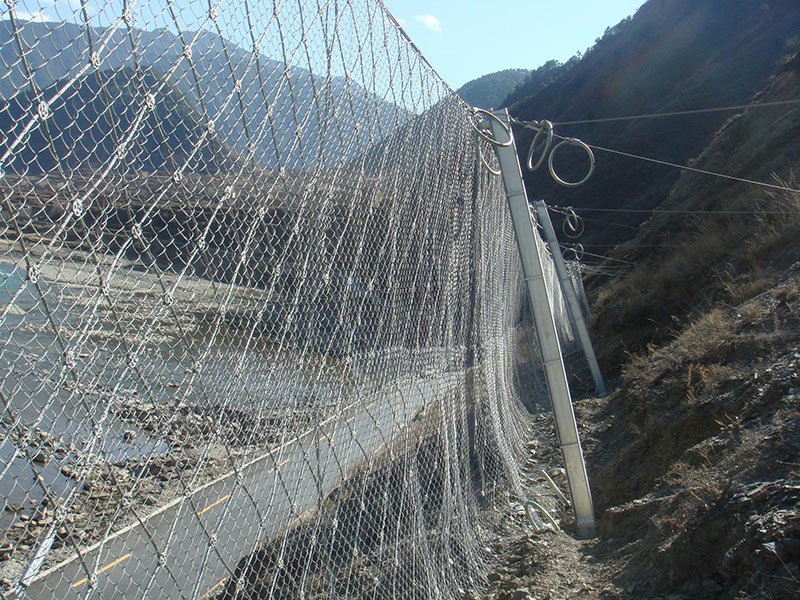 5. RX-075型被動防護(hù)網(wǎng)采用熱鍍鋅鋼絲繩編織而成,其防腐效果非常好在戶外條件下使用壽命長達(dá)50年。一般安裝在高速公路兩側(cè)、礦區(qū)、水庫、危險邊坡等地方。
